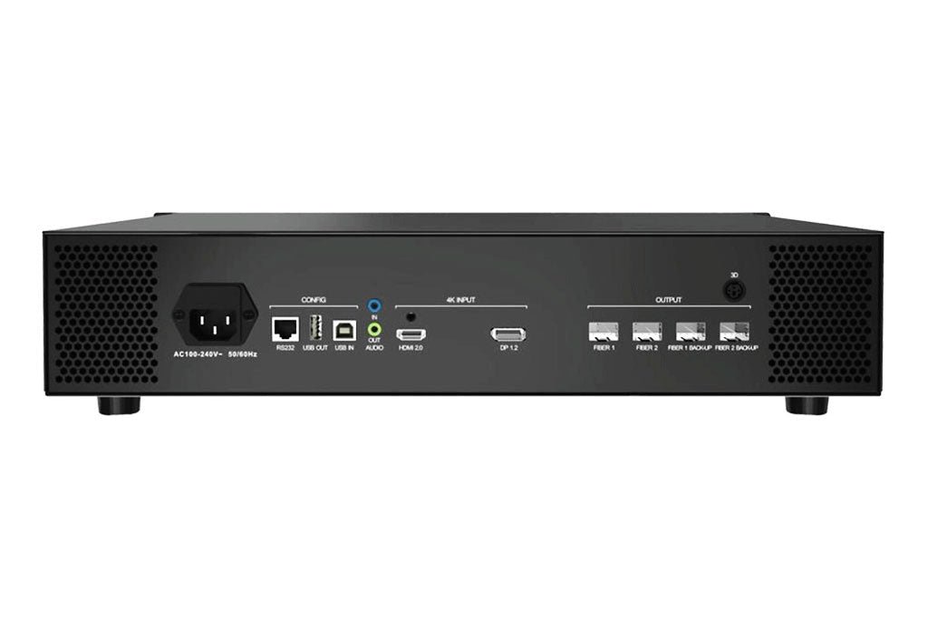 S20F is a controller possessing powerful video signal receiving capacity. It supports the input of DP1.2 and HDMI2.0, and seamless switching between signal sources. A single unit features a loading capacity of up to 8.85 million pixels, with a maximum width or height of 8192 pixels, while a single Ethernet port supports a loading width or height of up to 4096 pixels, and the controller supports signal inputs of up to 4096 X 2160@60Hz resolution. Thus, S20F allows users to configure ultra-long, ultra-high and ultra-large screens. S20F supports 4 optical fiber port output (2 active and 2 standby), as well as Ethernet port redundancy and controller redundancy. It can not only effectively ensure the display stability of screens, but also provide high- quality image display and flexible screen control.