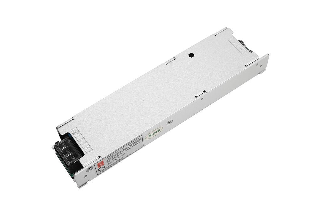 A-200FBK series is a 200W fanless design LED display driver power supply, input voltage range: 180~264VAC, output voltage 2.8V, 3.3V, 3.9V, 4.2V, 4.5V, 4.6V, 5V, etc., which can be applied to LED display, LED indicator and other LED display fields, this series of products is ultra-thin design, height is only 26.4mm, can be adapted to a variety of box size requirements. The height of this series of products is only 26.4mm, which can be adapted to a variety of box size requirements. Ultra-high efficiency, compact housing design, and good heat dissipation ensure that this series of products can work stably for a long time.
