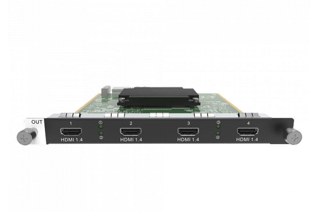 Novastar’s H Series 4x HDMI Output Card adds four HDMI 1.4 outputs to the H2/H5/H9/H15 Video Wall Splicers. When using all outputs individually, each one can support up to 2048 x 1152 at 60 Hz. If outputs 2 & 4 only are used, each one can handle up to 3840 x 1080 at 60 Hz and their output will be copied to connectors 1 & 3.